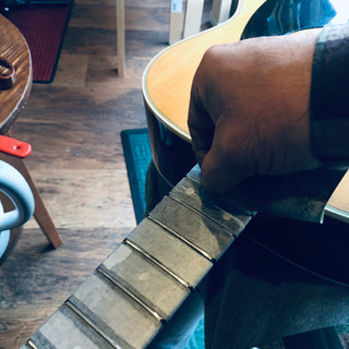 長い間触っていなくて弦を少し緩めていたのでネックがやや逆反りになっていたのでトラスロッドを緩めて(殆ど効いていない状態)一通りクリーニングして弦も張替えてみると2弦あたりでビビりが出ていたのですり合わせしまして何とかビビりも収まりました。