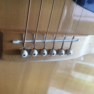 弦を張るとブリッジの傷ついた縦の筋も殆ど弦に隠れて見えなくなったのが幸いでした。