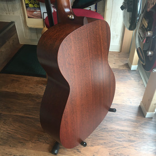 オールマホガニーボディーシングルオーサイズで小ぶりな割に胴厚な作りでとてもしっかりとした鳴りで全体がマット塗装で質感がしっくりきて弾いていてとても心地よいギターです。