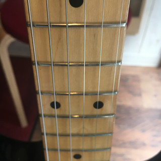 こちらのストラトは暫く使っていなかったようで、当初ガリが出ていたので先ずは電装系の接点を接点復活剤で奇麗にして何とかガリも収まりまして、他金属パーツを磨いてネジ類の増し締め、ペグの給油、弦高調整、PU高さ調整、オクターブ調整、全体の磨き上げを行ない新品弦に張り直して一通りの調整を行ないました。
