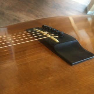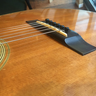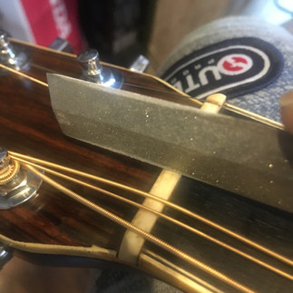 ブリッジ裏板保護プレートを貼ってサドルを削ってナット溝も調整して弦高を2.1ミリ位にして弾きやすいヤマキ135に仕上げました。