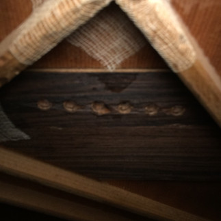 ネックの根元のブロックに斜めにしっかりと補強の梁が入っていています。