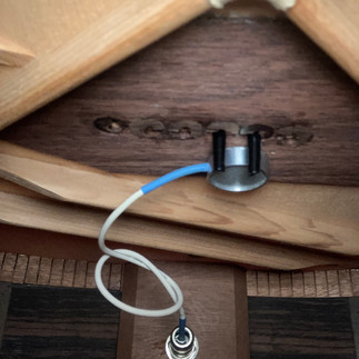 ボディエンドに12ミリの穴をあけてブリッジ裏の低音弦側に取付けました。