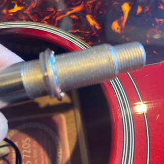 ギターによってはサウンドホールから手が入らない時はジャックの先の穴に紐を付けてジャックを引っ張り出します(それ用の穴なのでしょうか?スパナで締める時もこの穴に細い6角レンチとかの棒を挿して固定します)