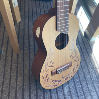 こちらはトップに葉っぱのデザインされた以前のバージョンのギタレレです。