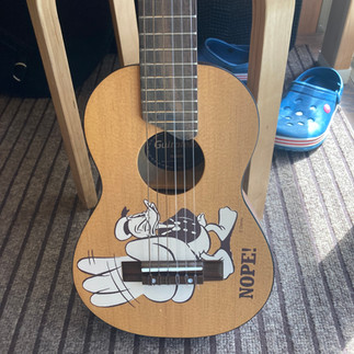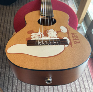 仕上がって暫くして、ドナルドダックバージョンのギタレレを購入してくれた御贔屓頂いているライブバーのマスターさんのお客さんがこの子を欲しがっているとの事で予約済みとなってディズニーバージョンの二本のギタレレは直ぐに売れてしまいましたが気軽に弾けるギタレレって可愛いのでまた機会があったら入手してみたいなぁと思いました。