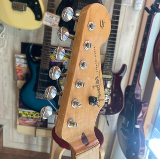 オーナーのNさんが色々と手を加えられたストラトでボディはフェンダージャパン製のボディと同じくフェンジャパのトラ杢が入った良さげなネックを組んだそうで、他にも配線を改造してキルスイッチを付けたりトーンノブがタップ式になっていたり、ペグがゴトーのロック式、ネックプレートもアップグレードしてたりします。(中々配線に詳しいんですね~)