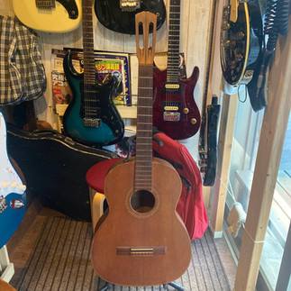 見た目は古めかしいガットギターですが、58年製のヤマハの超初期の当時の最上位機種のNO.300というとても希少なガットギターとのことです。(ラベルに手書きで1958と書かれております)