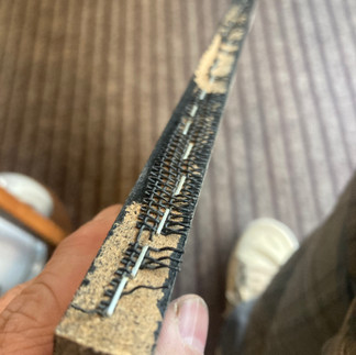 取り外したタッカーの刃~(実際はこの倍のタッカーを取りはずしますがこの作業だけで30分以上掛かって一連の作業でこれが一番大変でした~…)