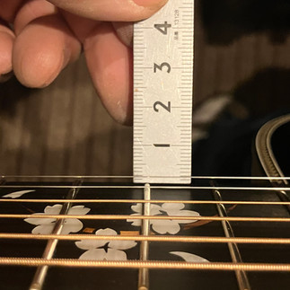 調整前の弦高は6弦12Fで約2.5ミリ、1弦2ミリ程で更に弾きやすいように弦高をさげます。