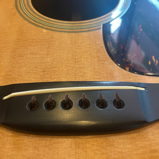 ロングサドルなのでサドルの下を削らず(端の斜めの位置がずれるので)サドルの上面を削って弦高をさげました。