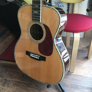 とてもゴージャスなギターで、マーティン000-45のコピーで高級感があって本家同様豪華なインレイが奇麗でポジションマークやダイヤモンドボリュートも本家みたいです。